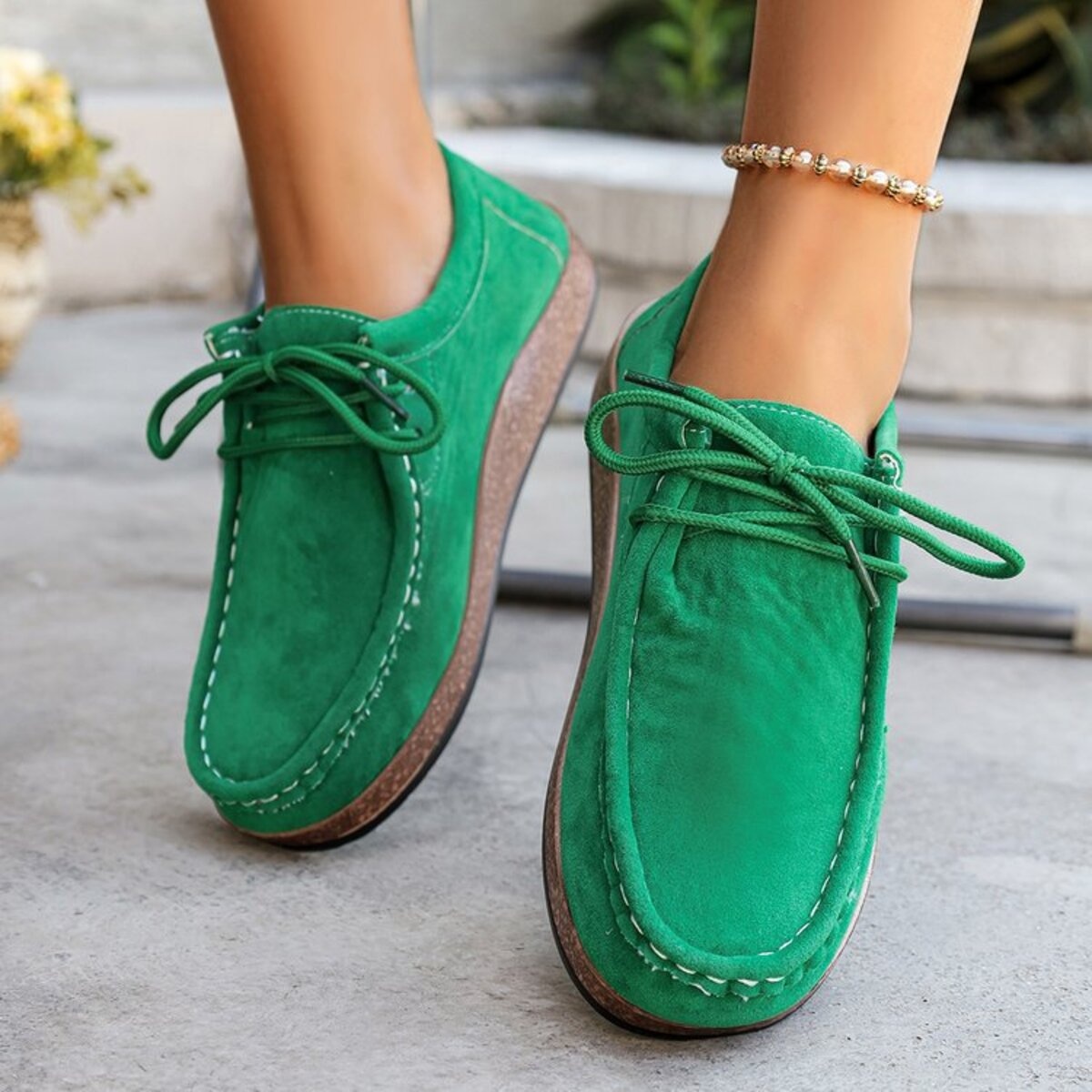 Round Toe Lace Up Slip-Ons