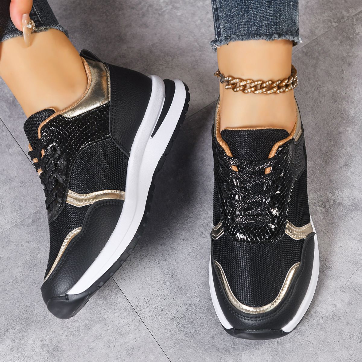 Round Toe Lace Up Sneakers