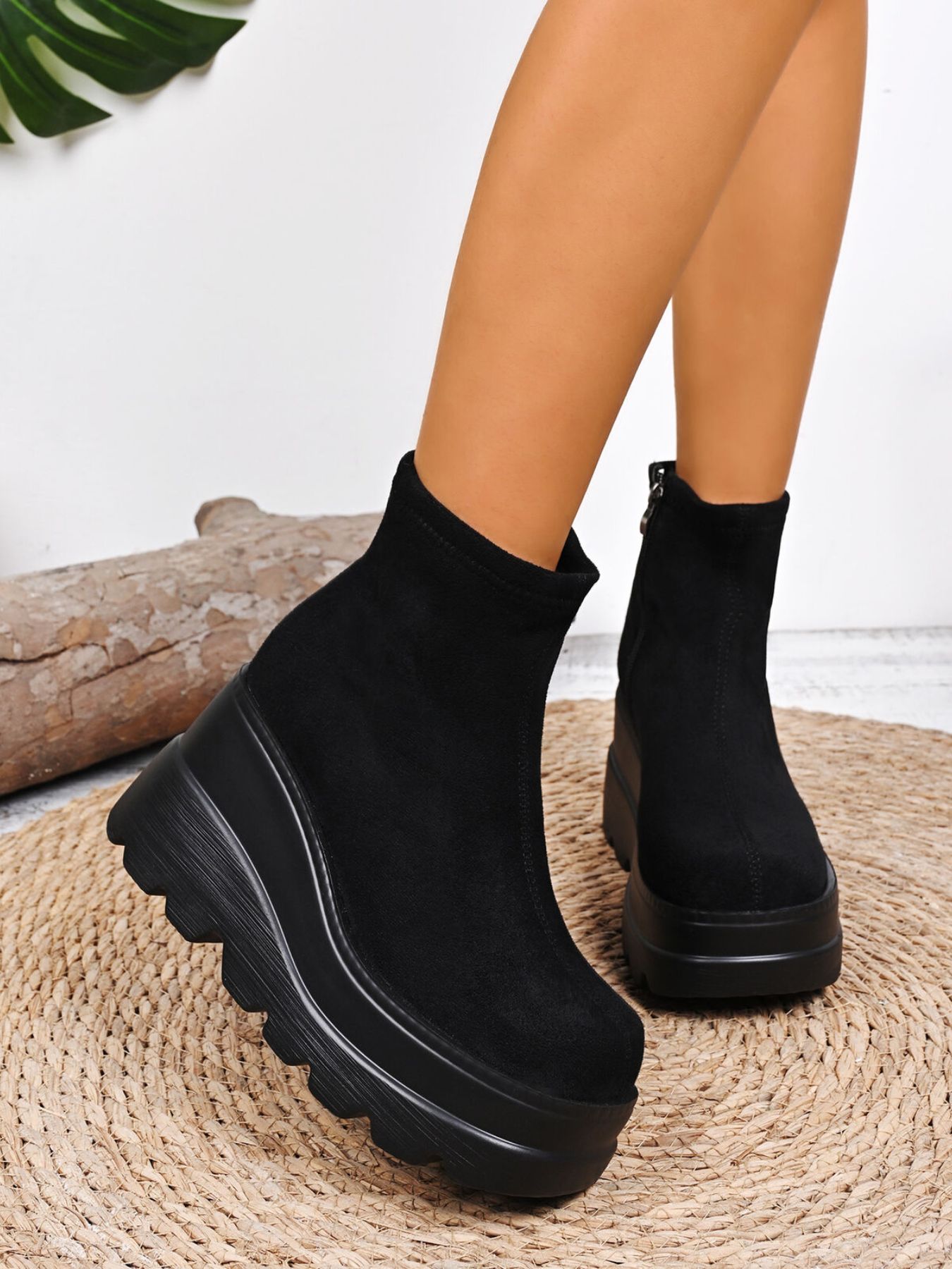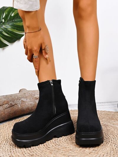 Round Toe Platform Wedge Boots