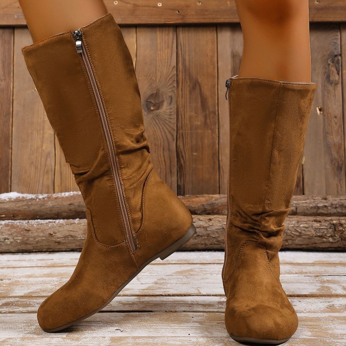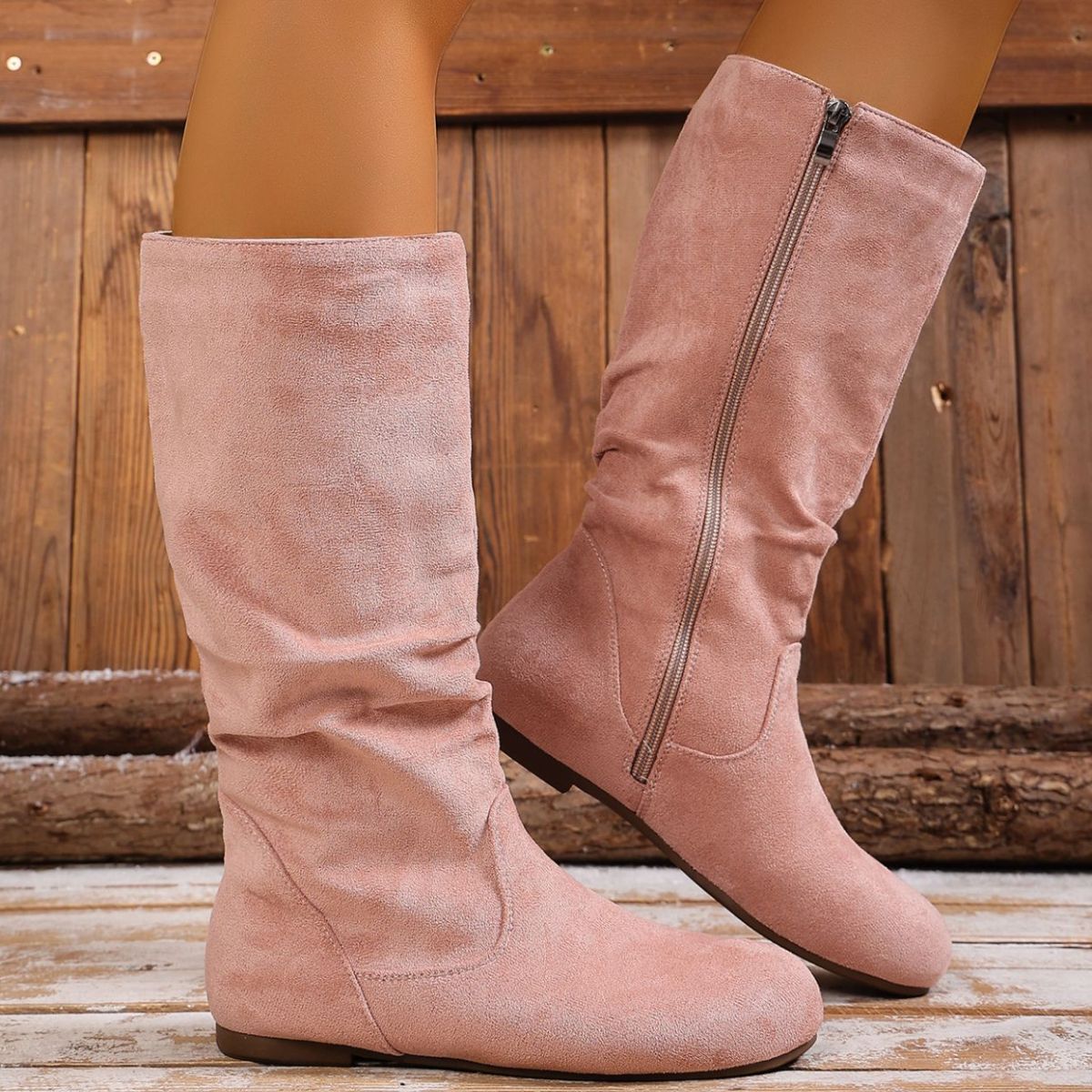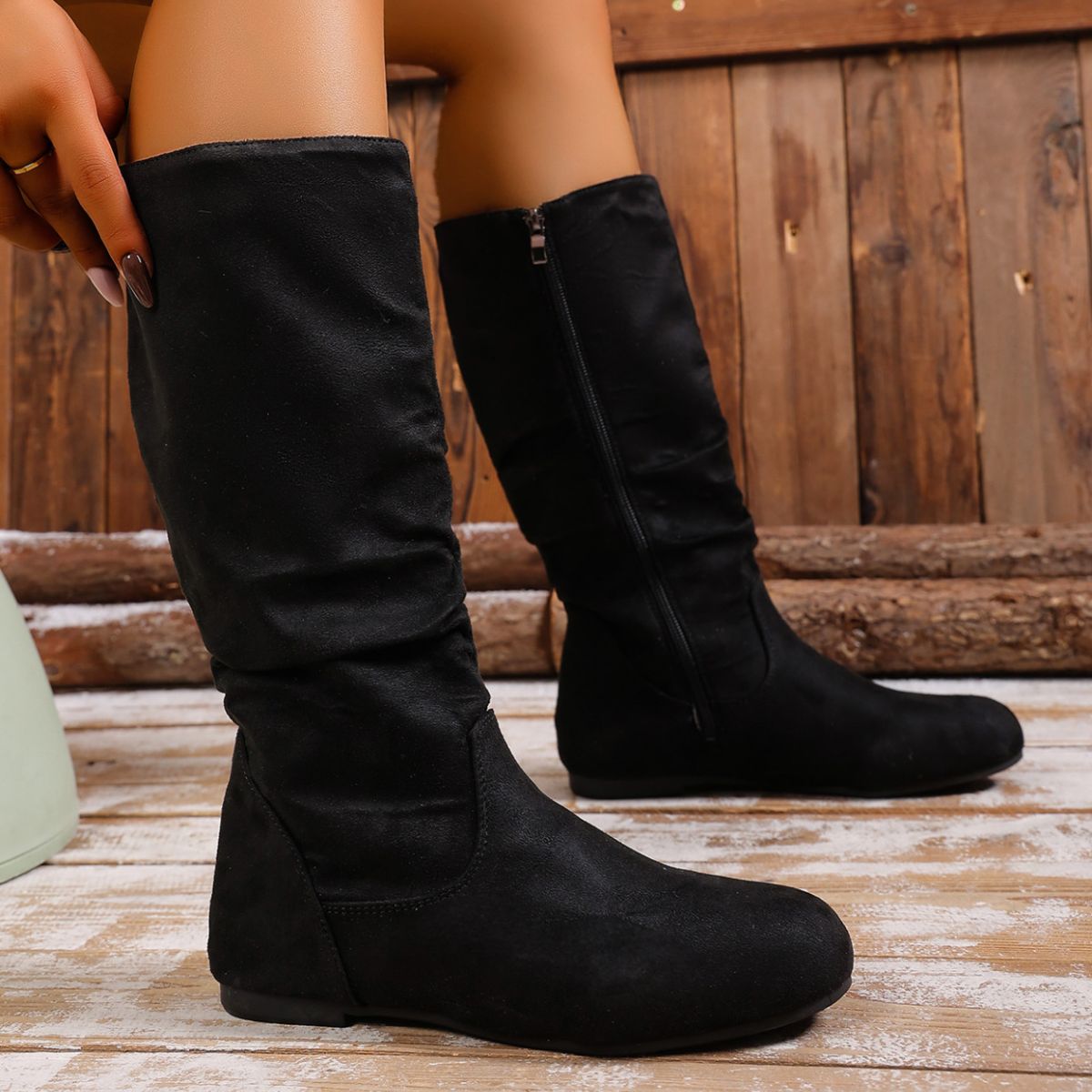 Round Toe Side Zip Boots