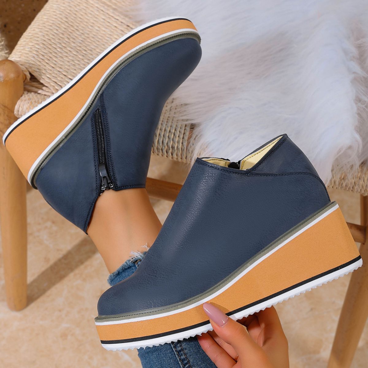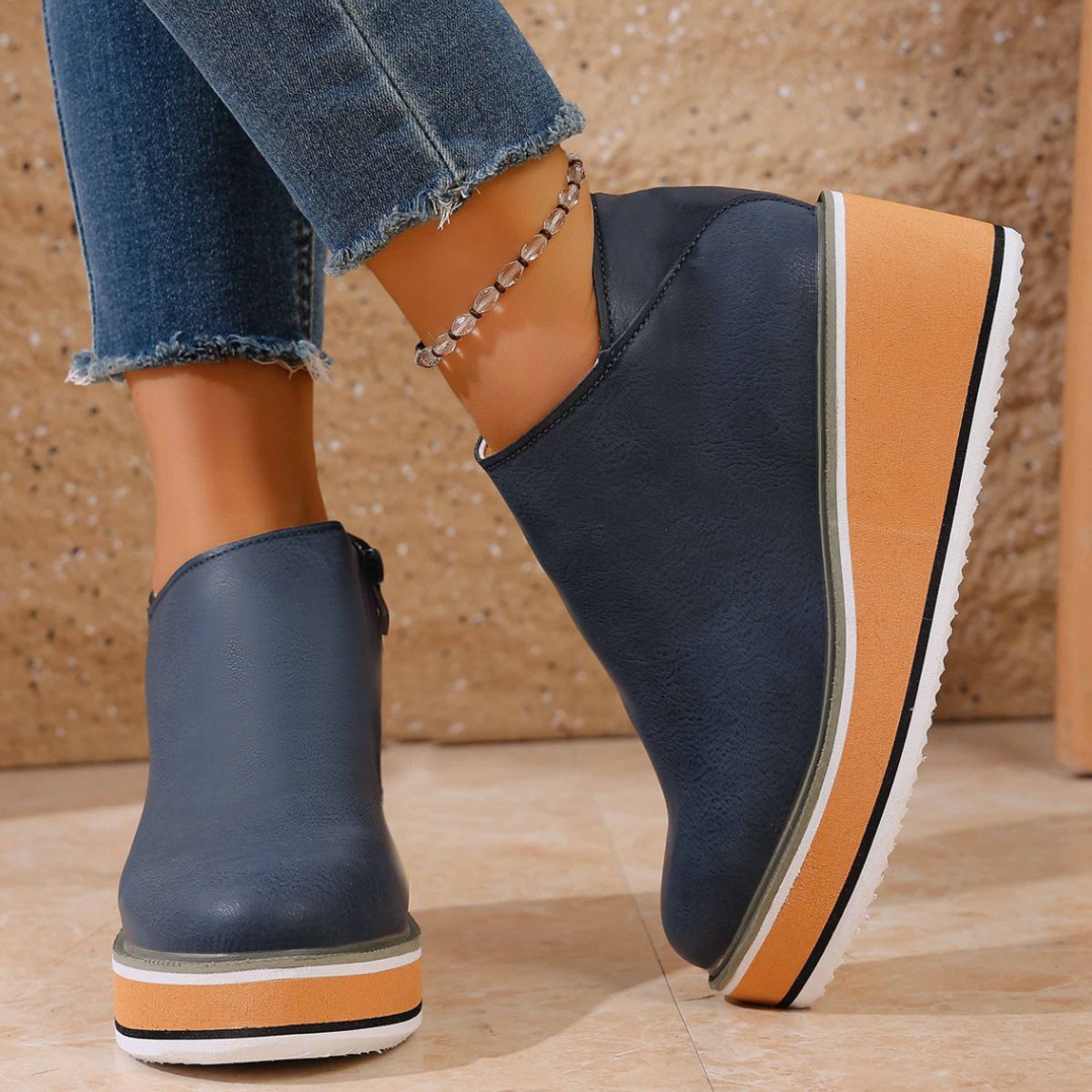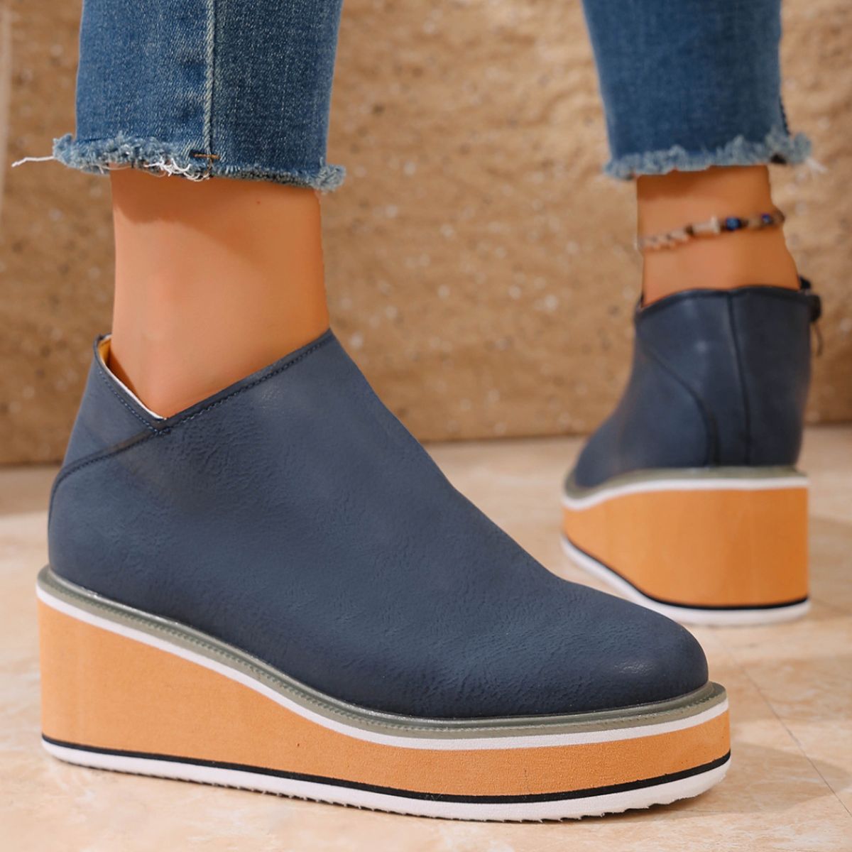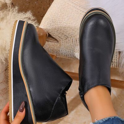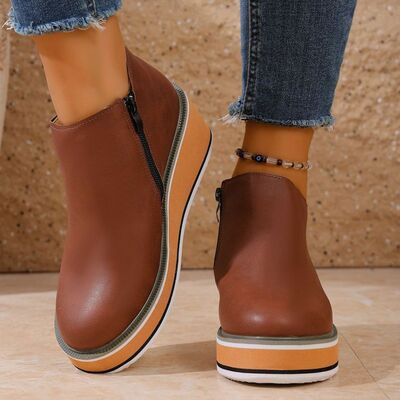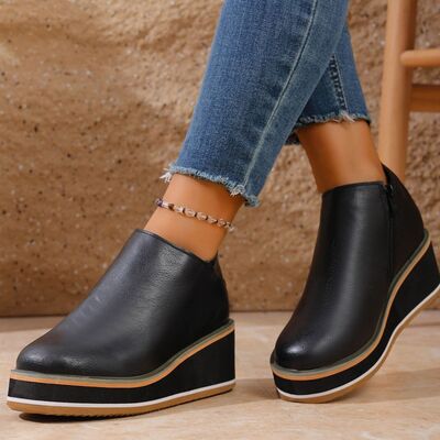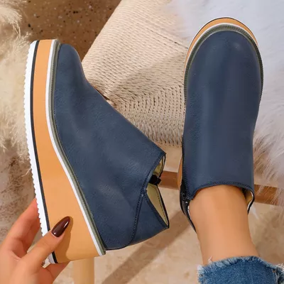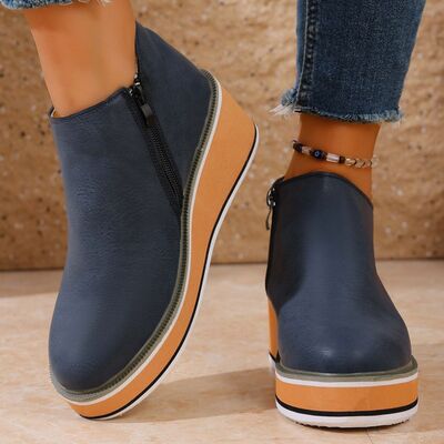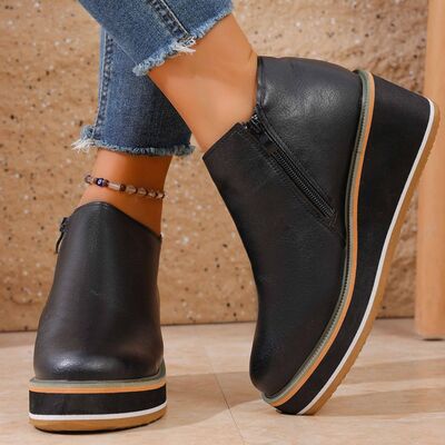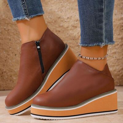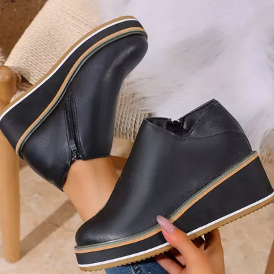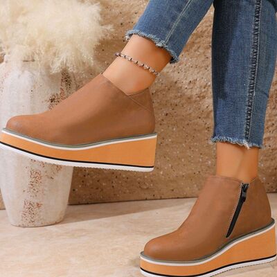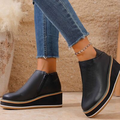 Round Toe Wedge Ankle Boots