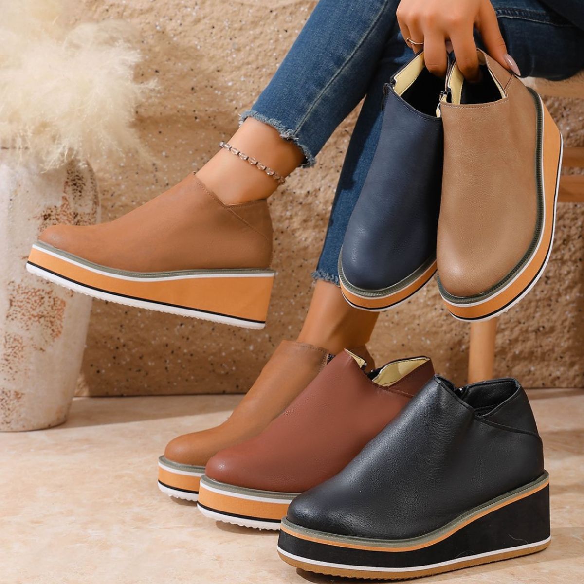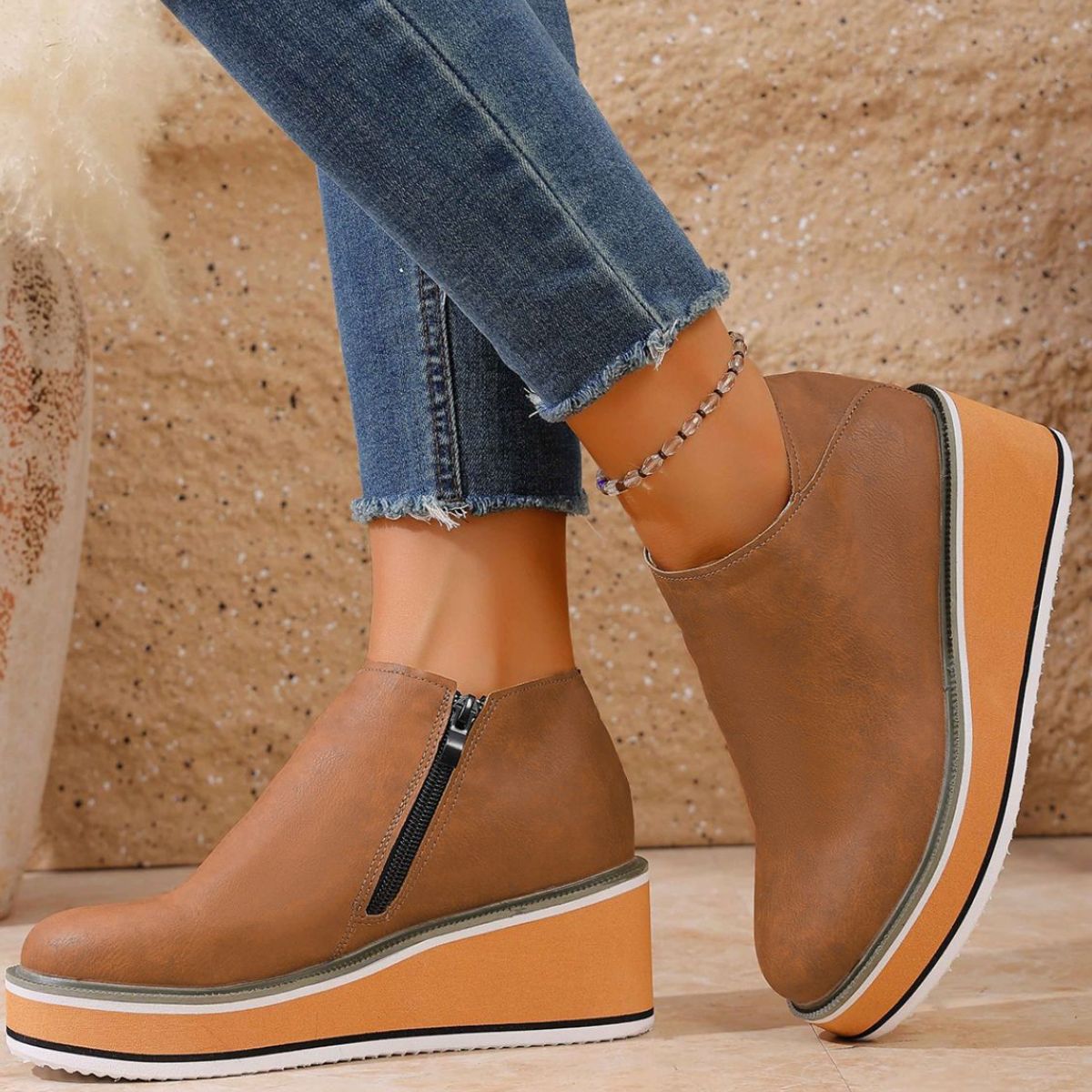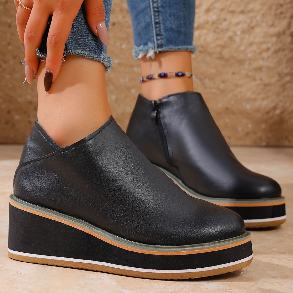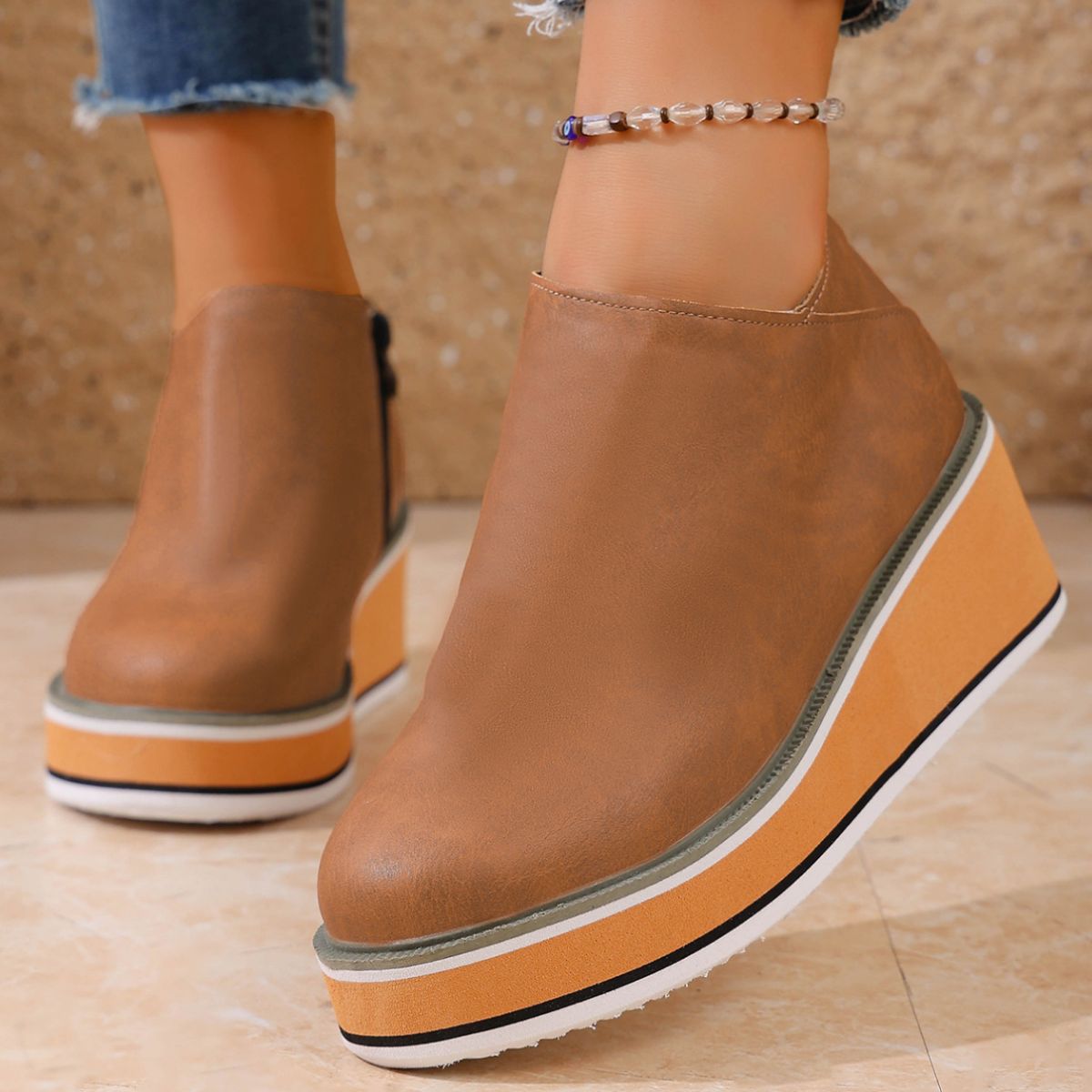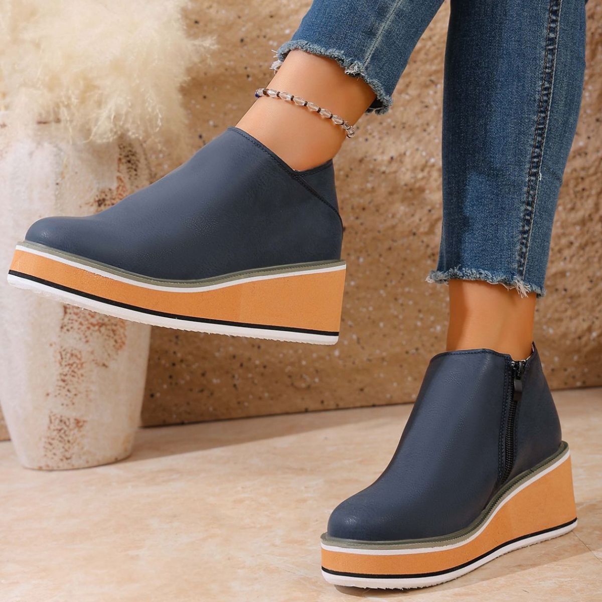 Round Toe Wedge Ankle Boots
