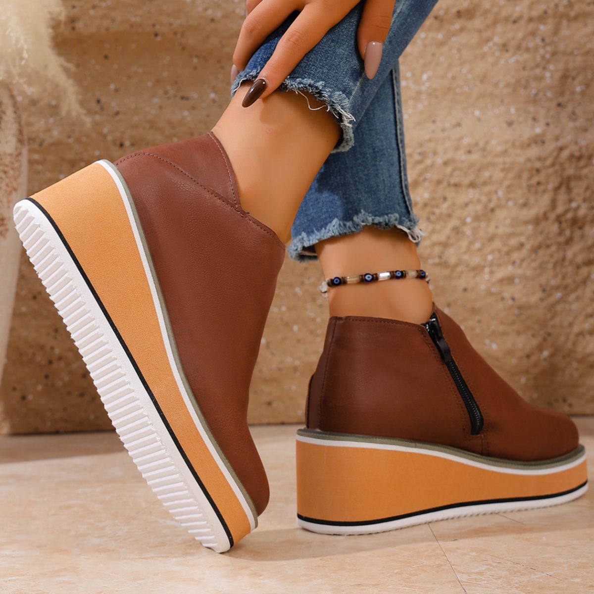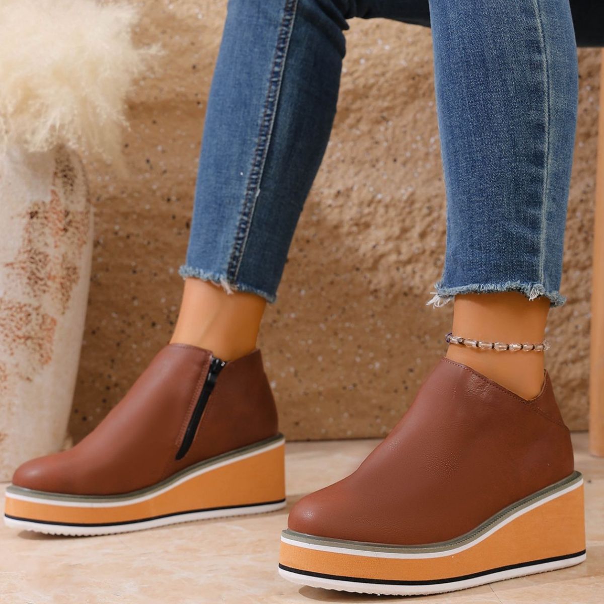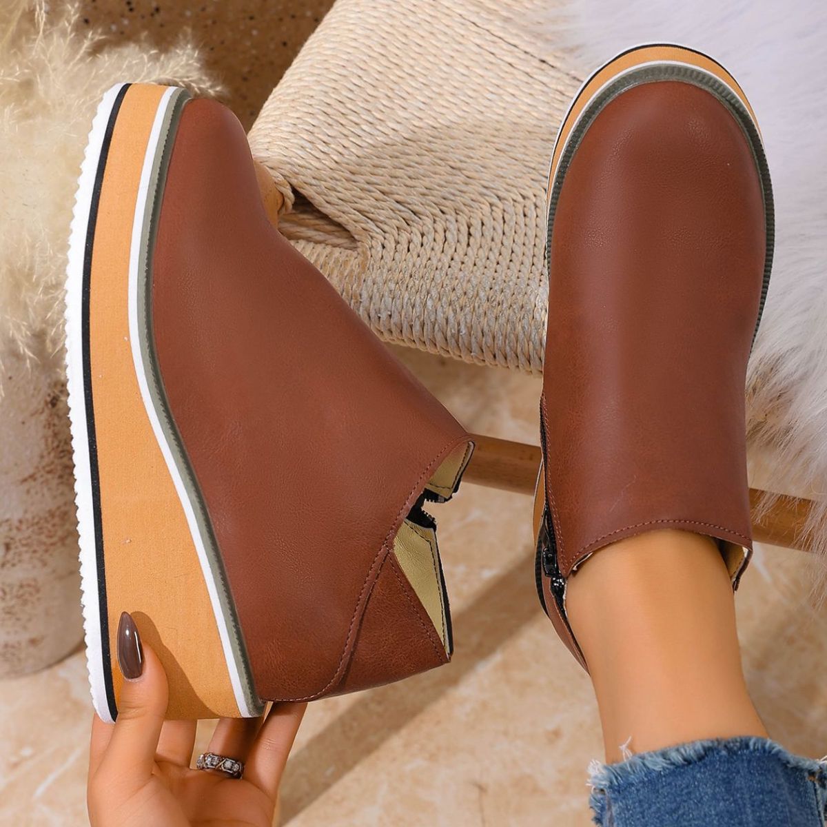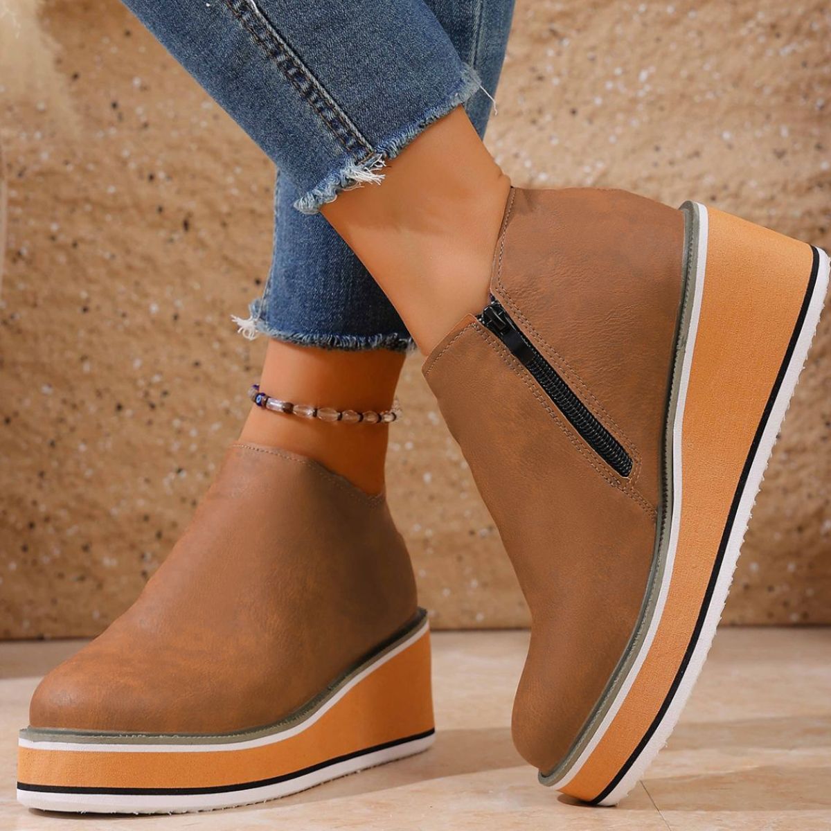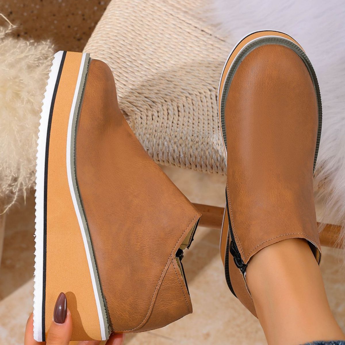 Round Toe Wedge Ankle Boots