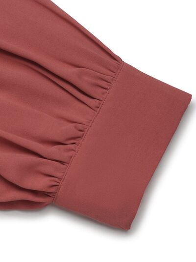 Ruched Collared Neck Long Sleeve Shirt