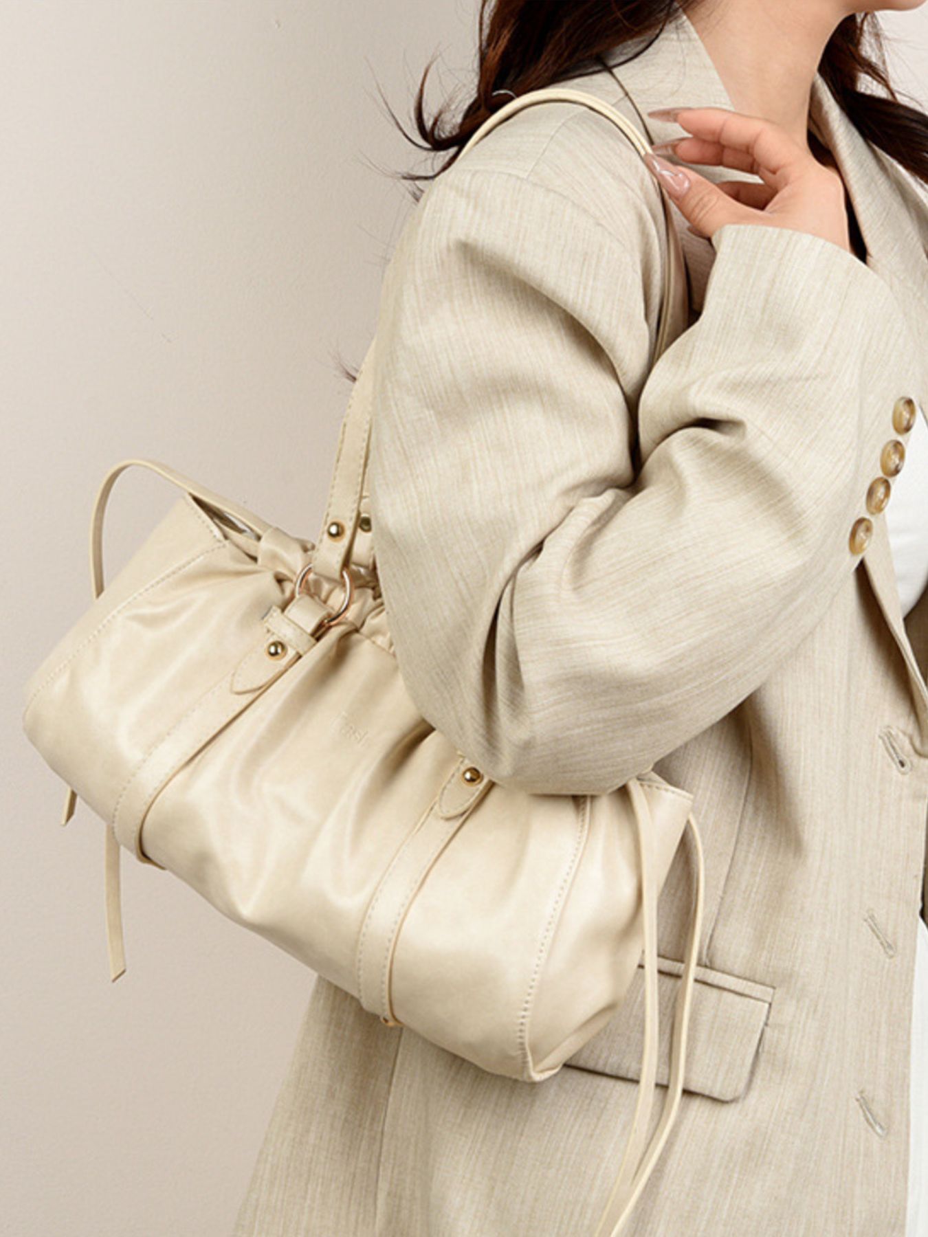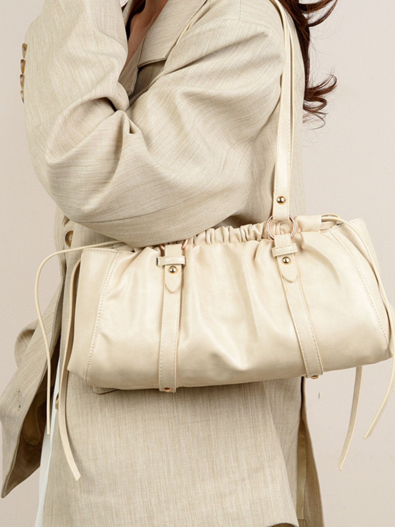 Ruched Leather Shoulder Bag