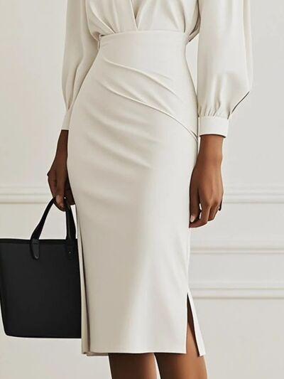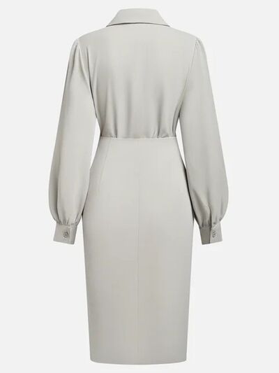 Ruched Midi Shirt Dress with Side Slit