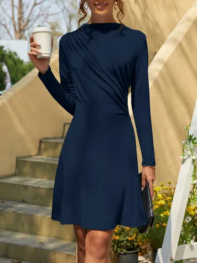 Ruched Mock Neck Long Sleeve Dress