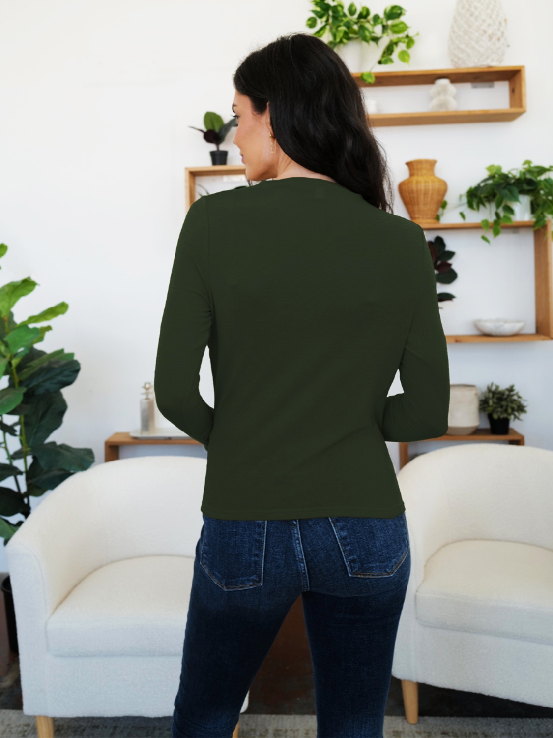 Ruched Mock Neck Long Sleeve T-Shirt