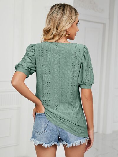 Ruched Notched Long Sleeve T-Shirt