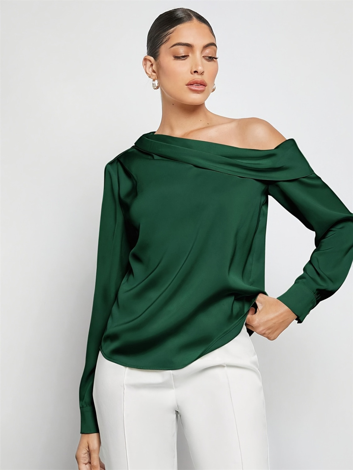 Ruched One Shoulder Long Sleeve Top