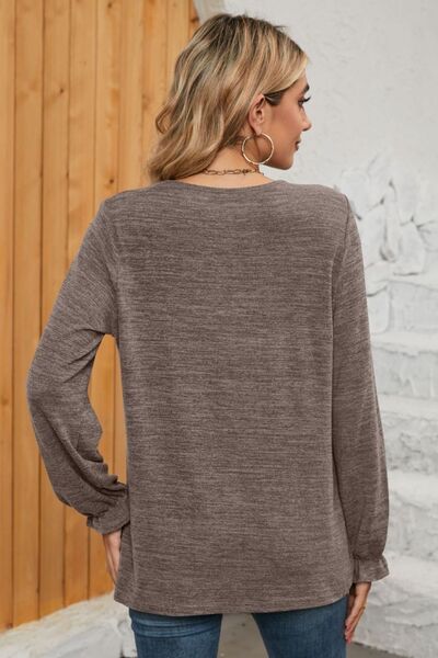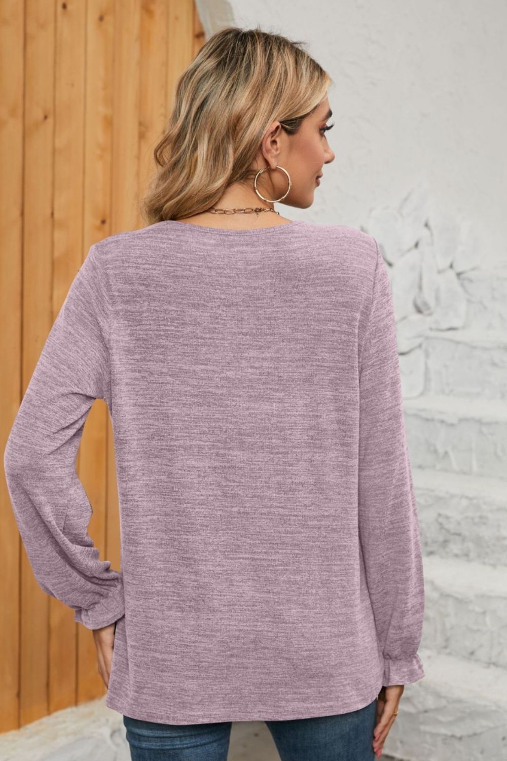 Ruched Round Neck Flounce Sleeve T-Shirt