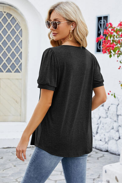 Ruched Scoop Neck Short Sleeve Blouse