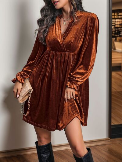 Ruched Surplice Long Sleeve Mini Dress