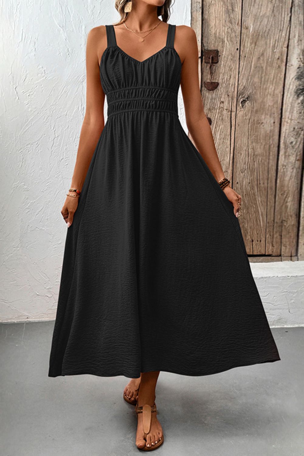 Ruched Wide Strap Cami Dress
