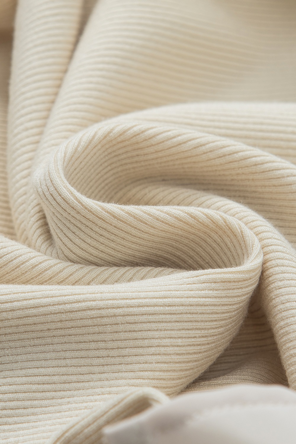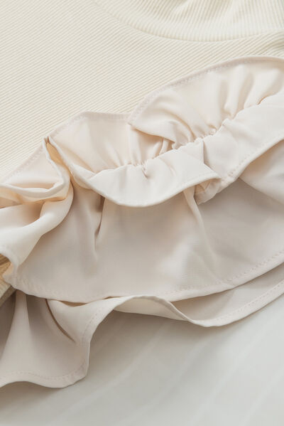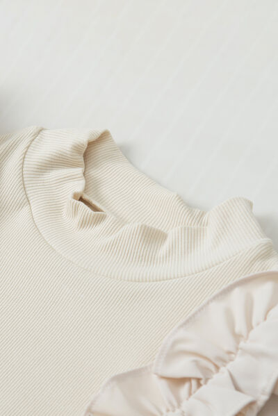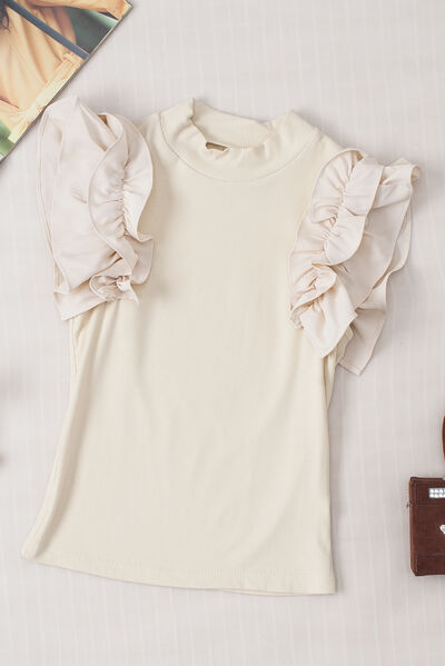 Ruffle Flutter Sleeve Mock Neck Ribbed Top