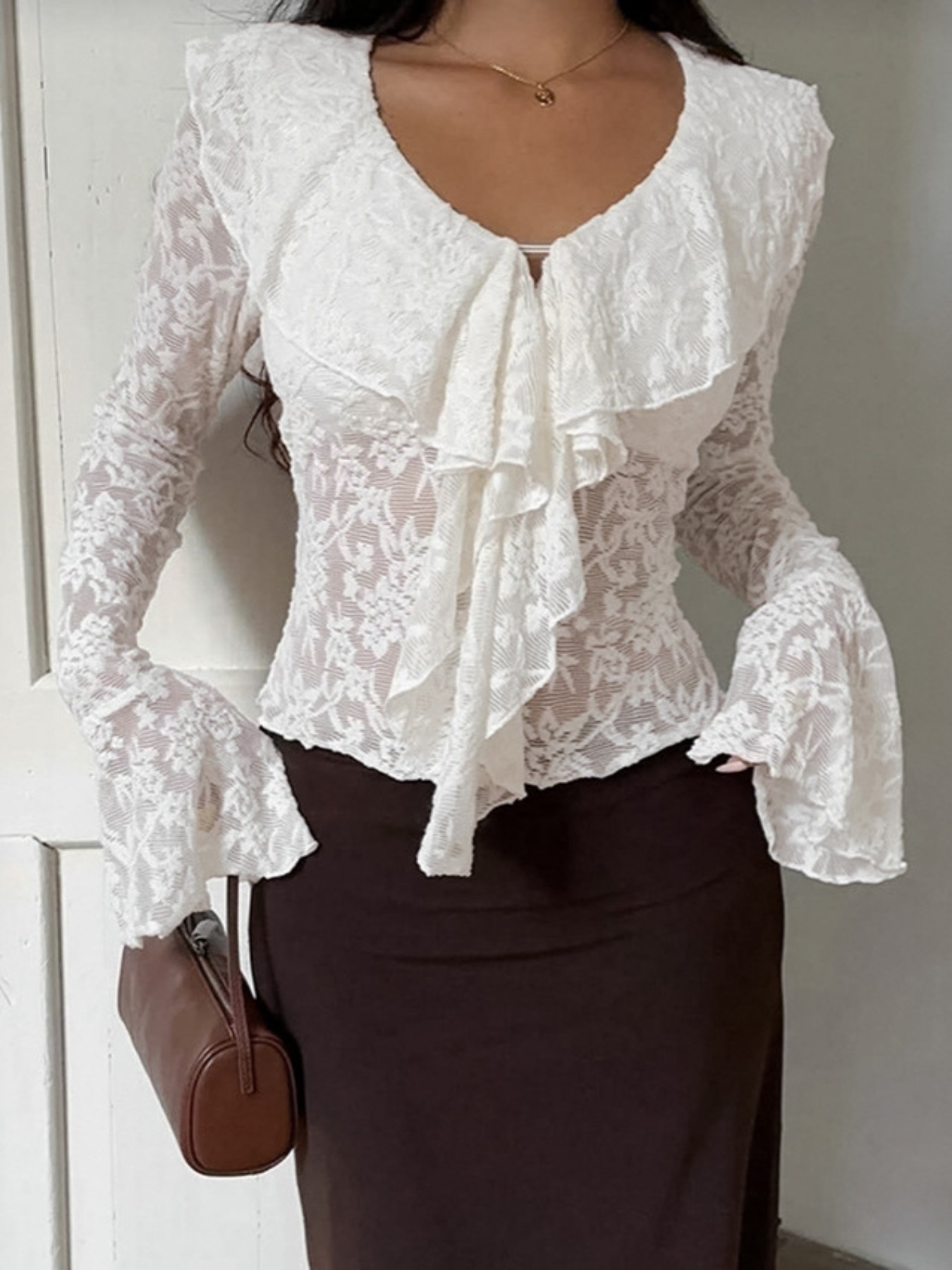 Ruffle Lace Long Sleeve Blouse