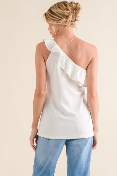 Ruffle One Shoulder Sleeveless Tank Top