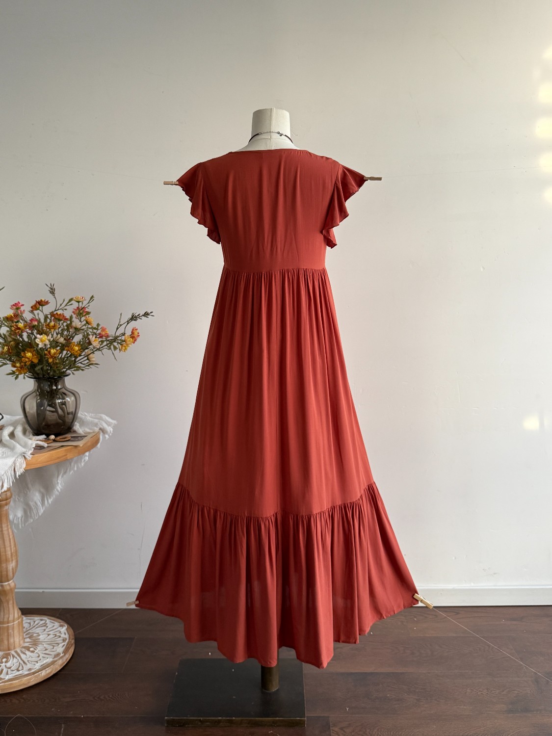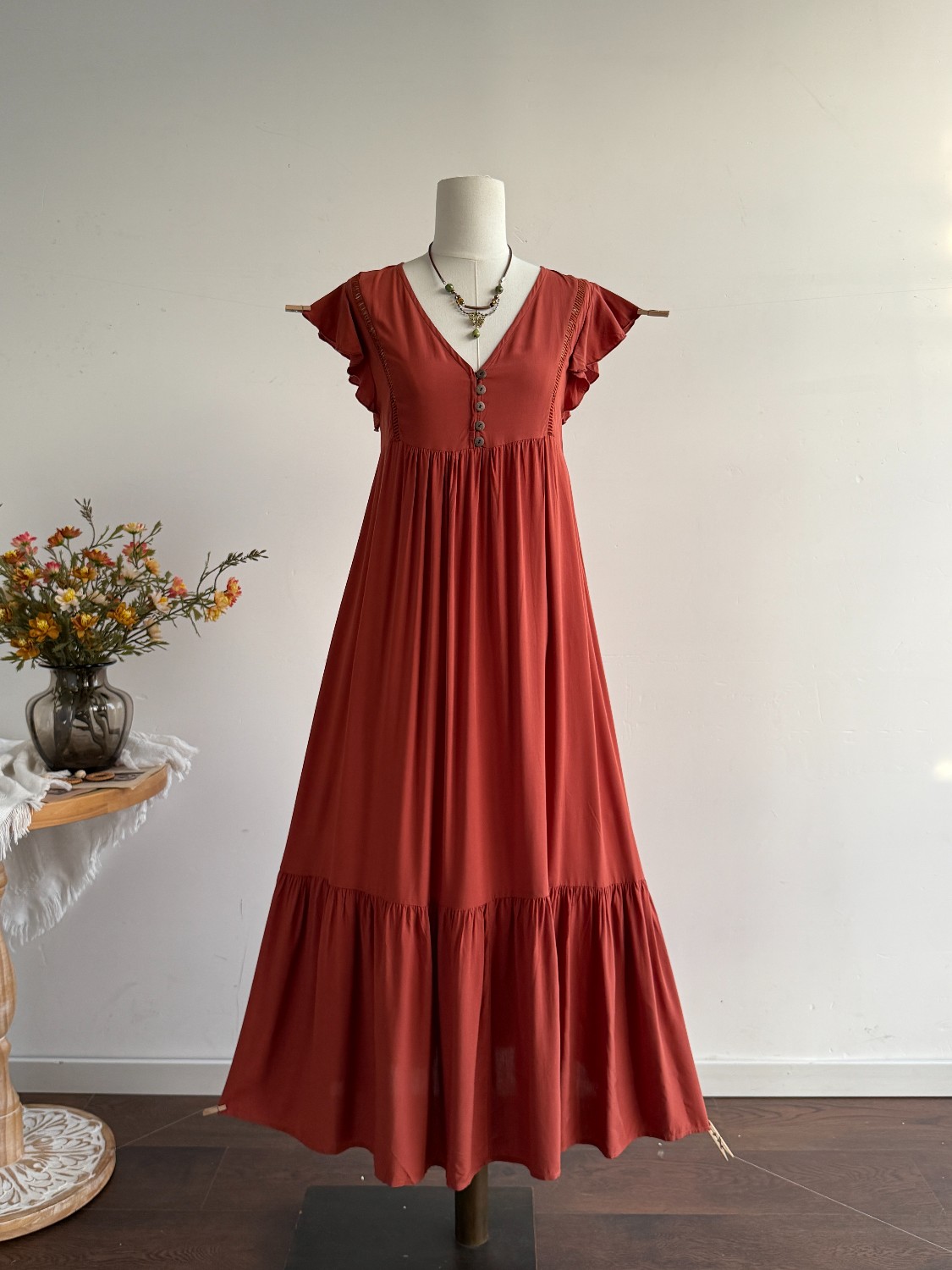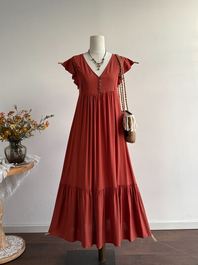 Ruffle Sleeve Maxi Dress with Button Detail