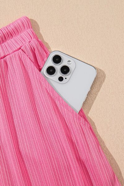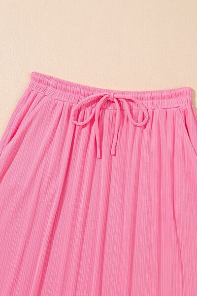 Ruffle Trim Round Neck Top and Drawstring Skirt Set