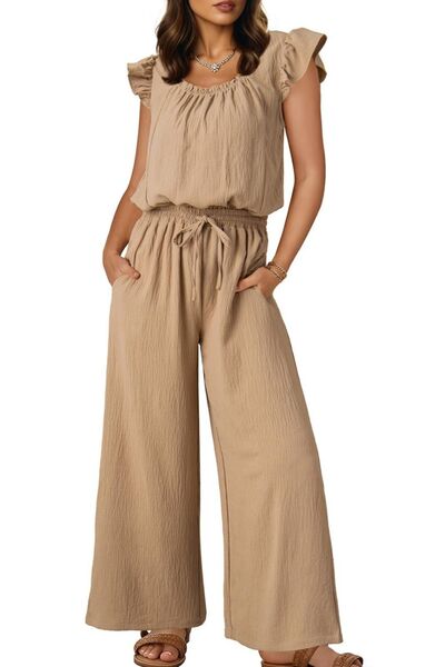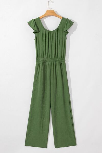 Ruffled Cap Sleeve Wide Leg Jumpsuit