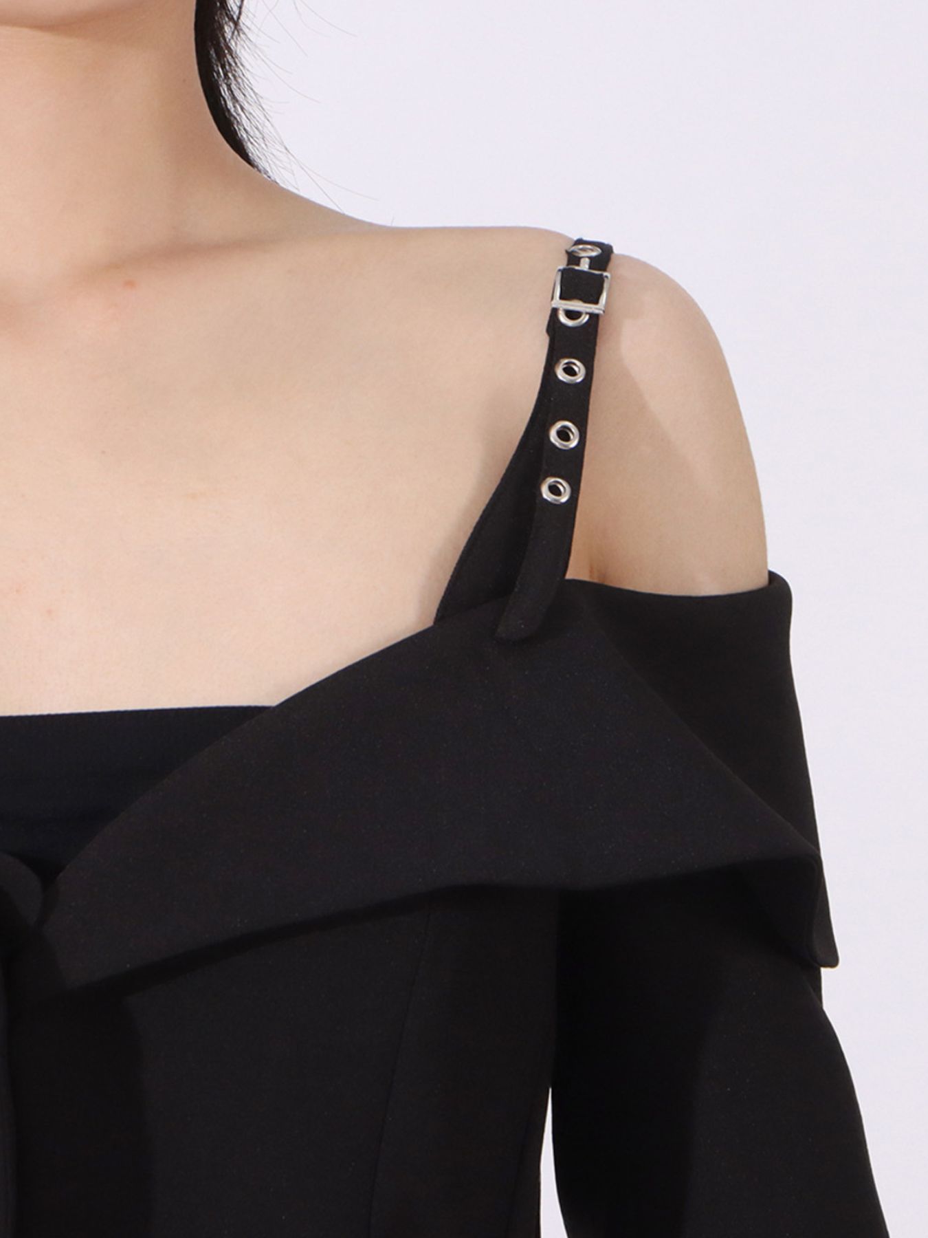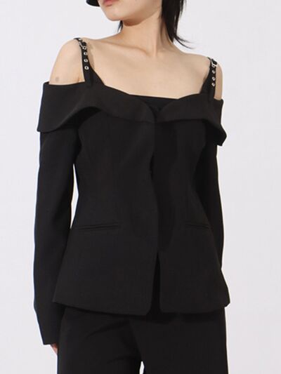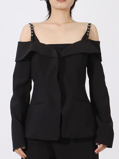 Ruffled Cold Shoulder Long Sleeve Outerwear