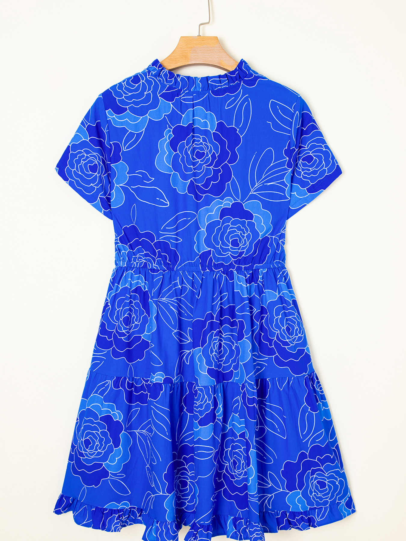 Ruffled Hem Short Sleeve Flowy Mini Dress