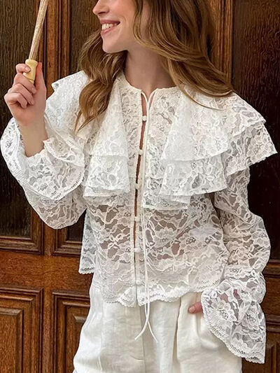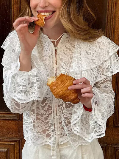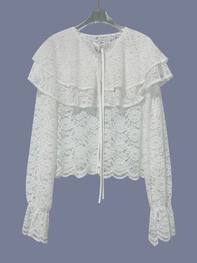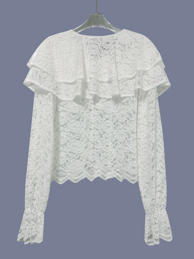 Ruffled Lace Flounce Sleeve Blouse