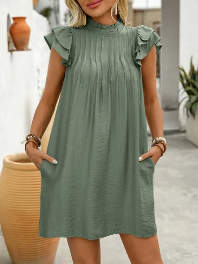 Ruffled Mock Neck Cap Sleeve Mini Dress