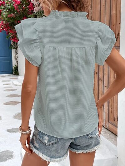 Ruffled Notched Cap Sleeve Blouse