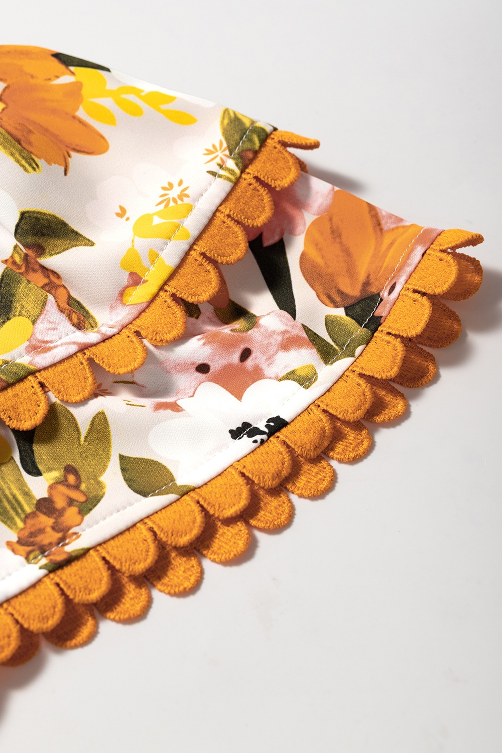 Ruffled Notched Short Sleeve Floral Blouse