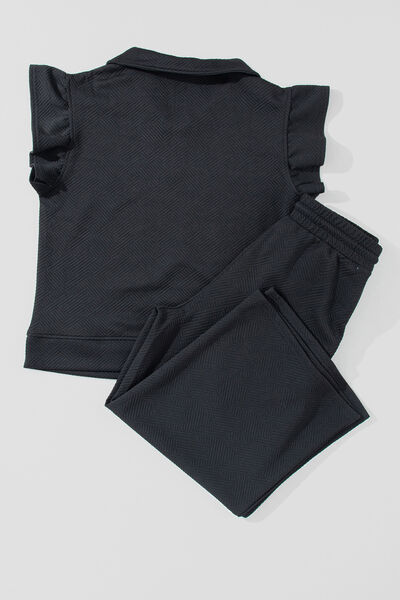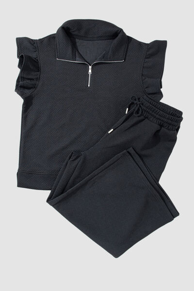 Ruffled Quarter Zip Top and Drawstring Pants Set