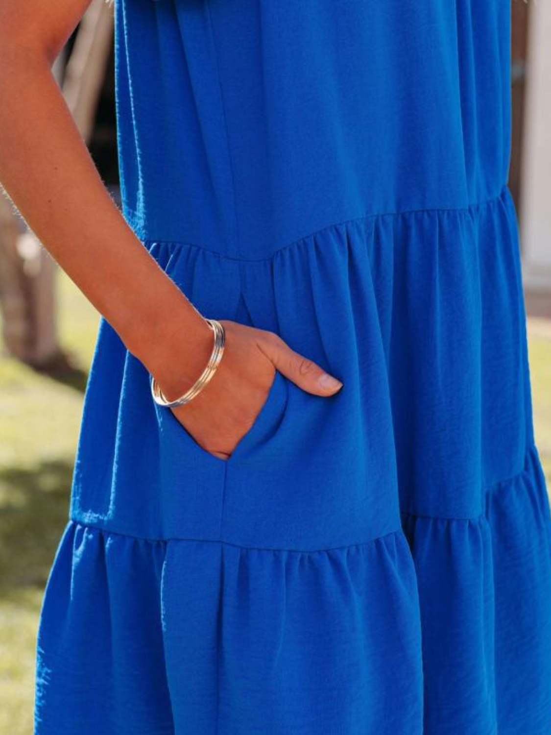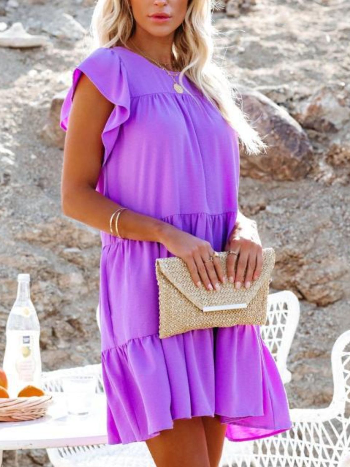 Ruffled Round Neck Cap Sleeve Mini Dress