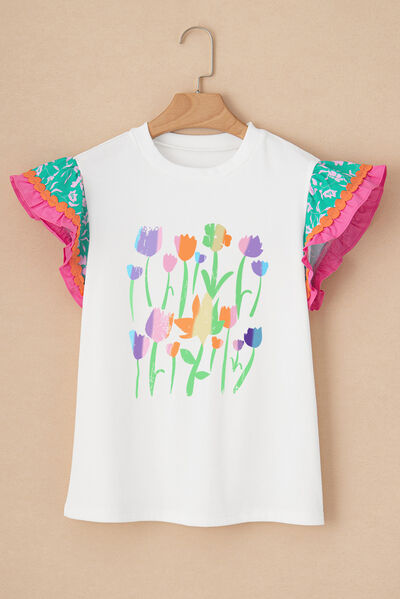 Ruffled Round Neck Cap Sleeve Top