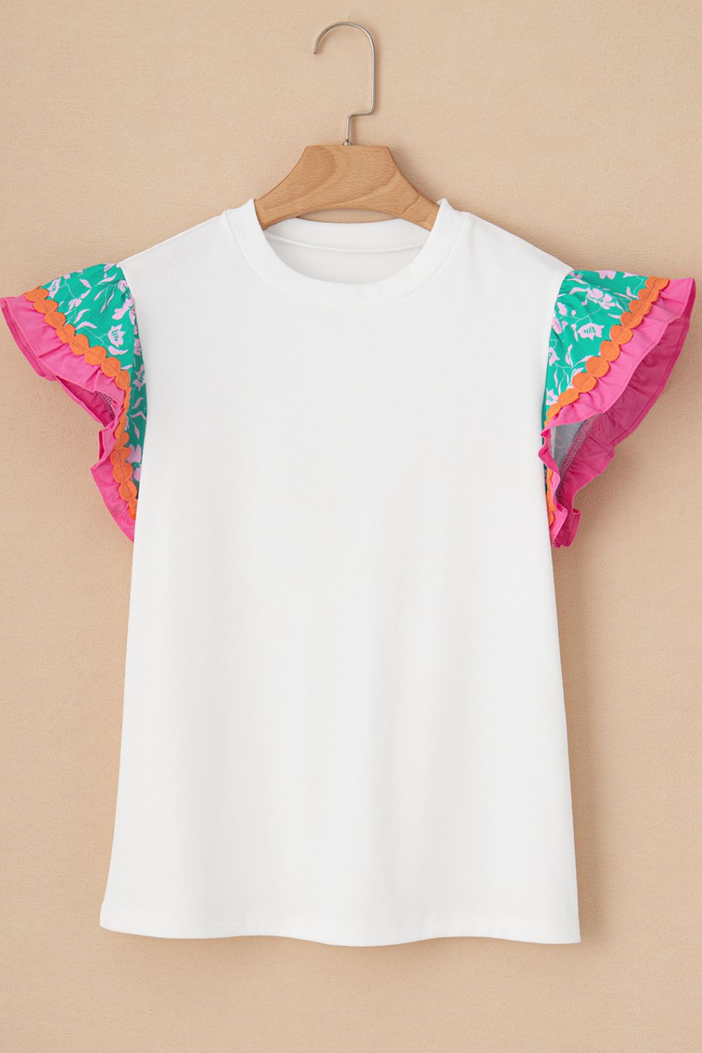 Ruffled Round Neck Cap Sleeve Top