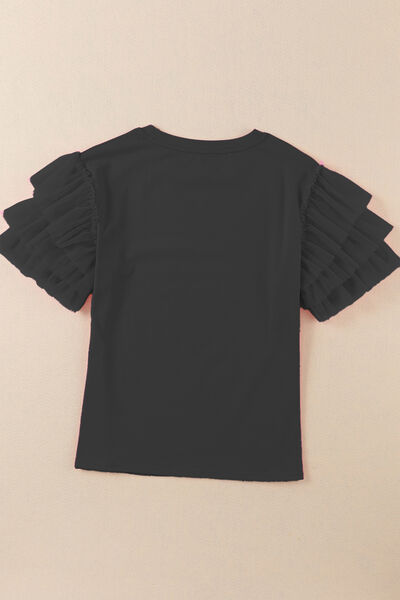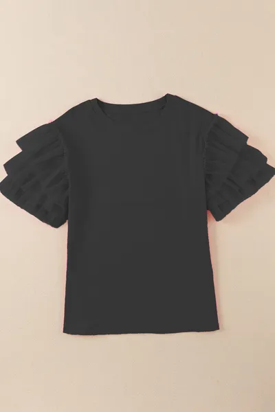 Ruffled Round Neck Short Sleeve Blouse