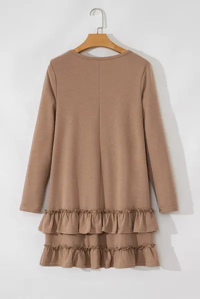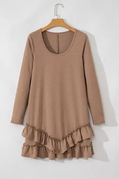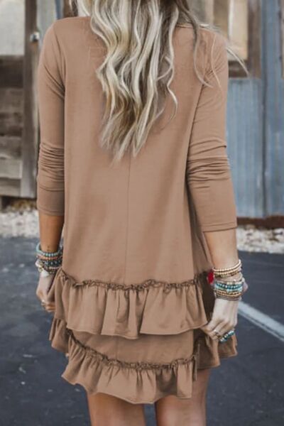 Ruffled Scoop Neck Three-Quarter Sleeve Mini Dress