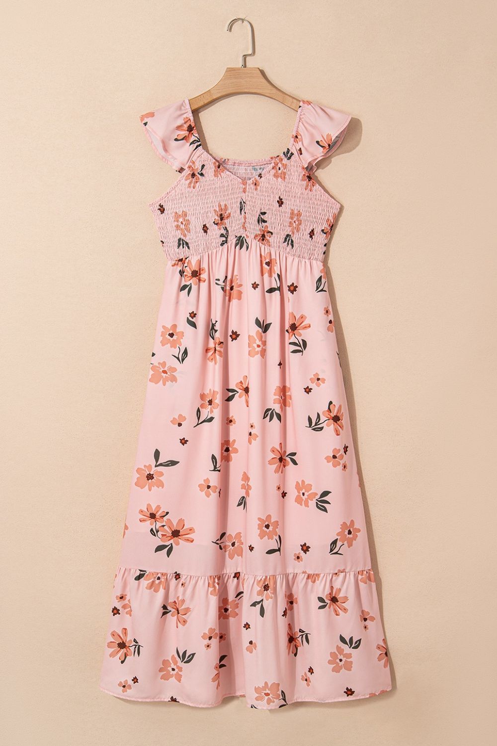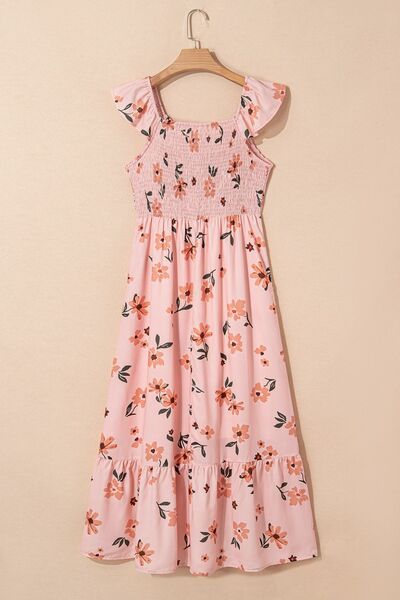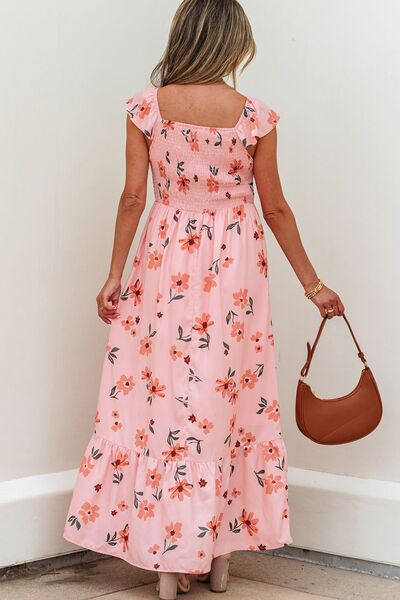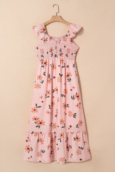 Ruffled Smocked Cap Sleeve Printed Maxi Dress