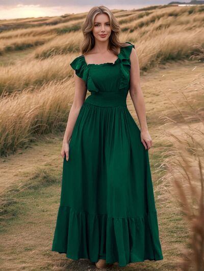 Ruffled Smocked Square Neck Maxi Dress