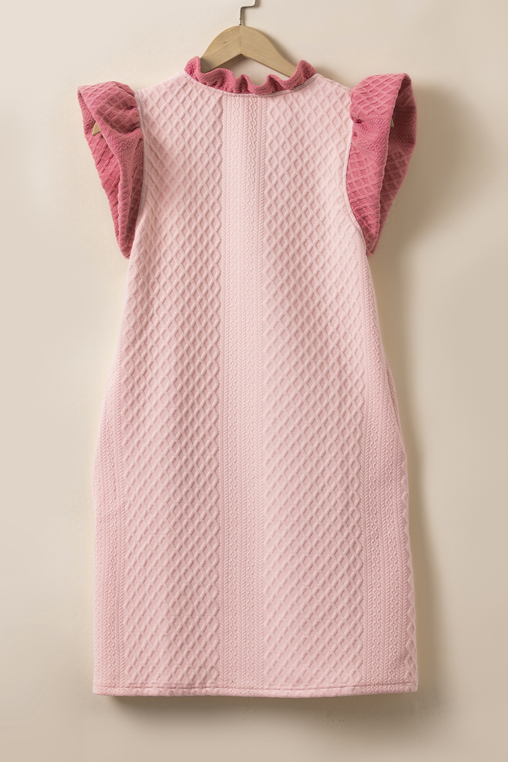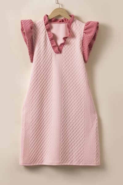 Ruffled V-Neck Cap Sleeve Mini Dress