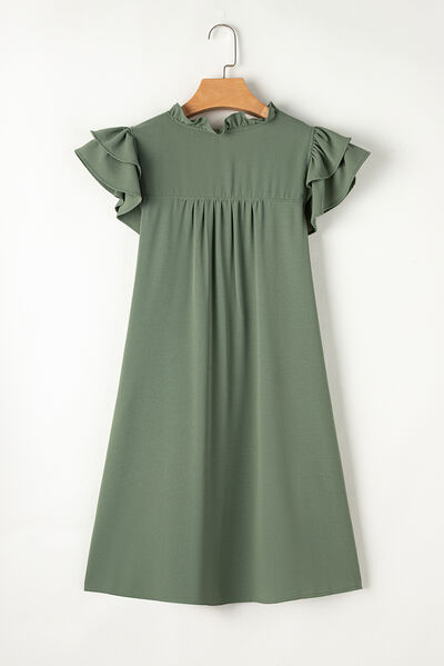 Ruffled V-Neck Cap Sleeve Mini Dress