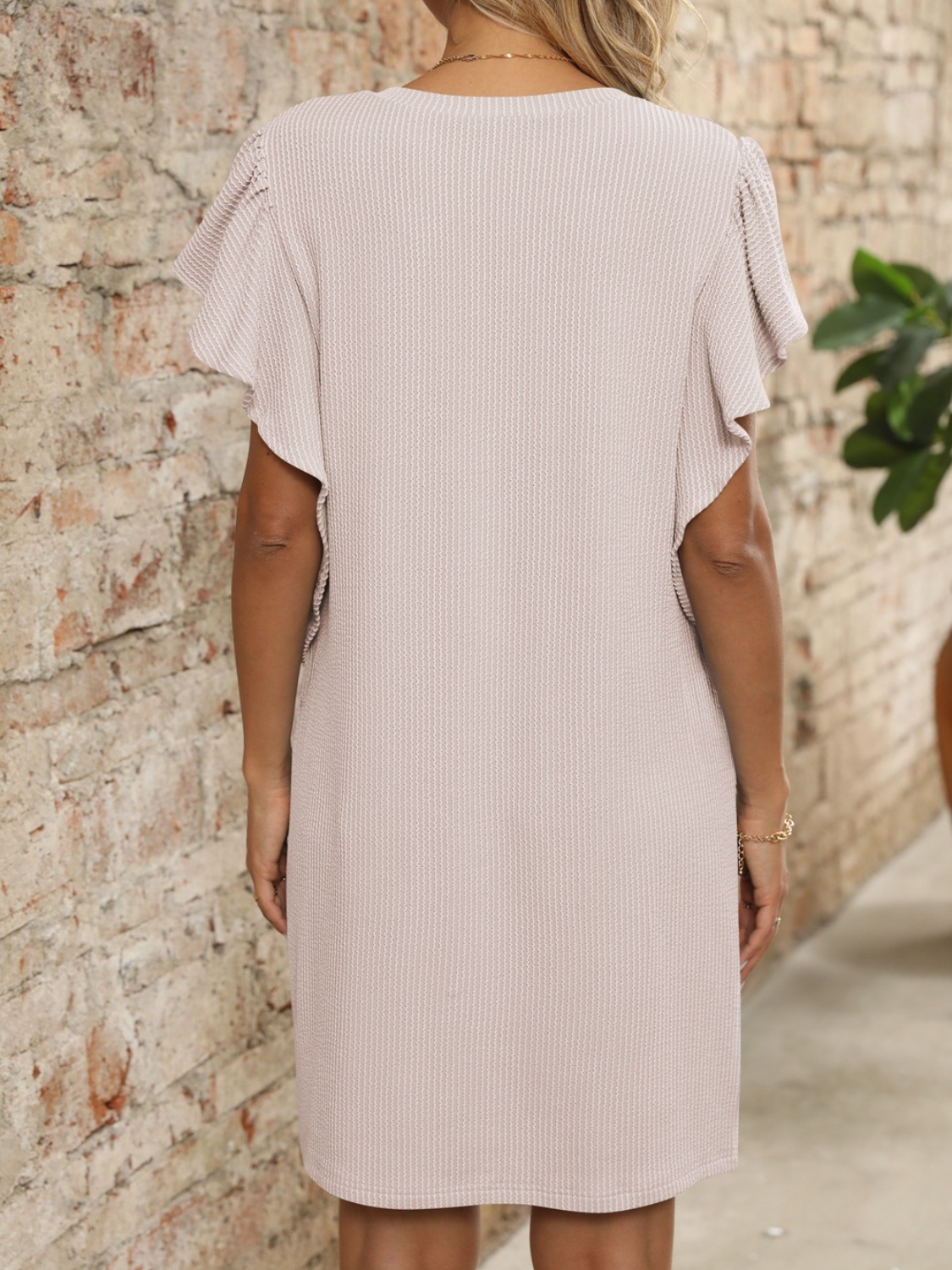 Ruffled V-Neck Cap Sleeve Mini Dress