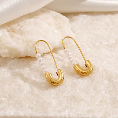 - Material:Synthetic Pearl,18K Gold-Plated,Stainless Steel