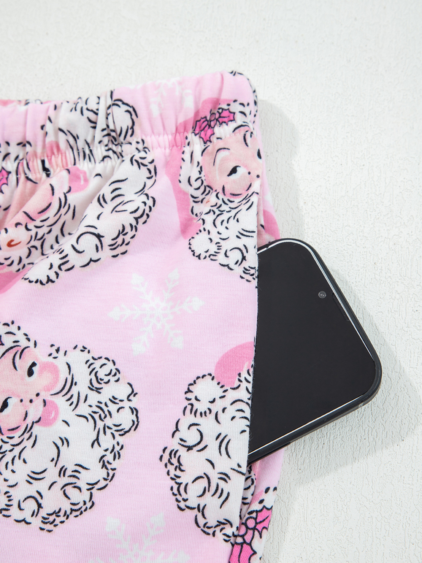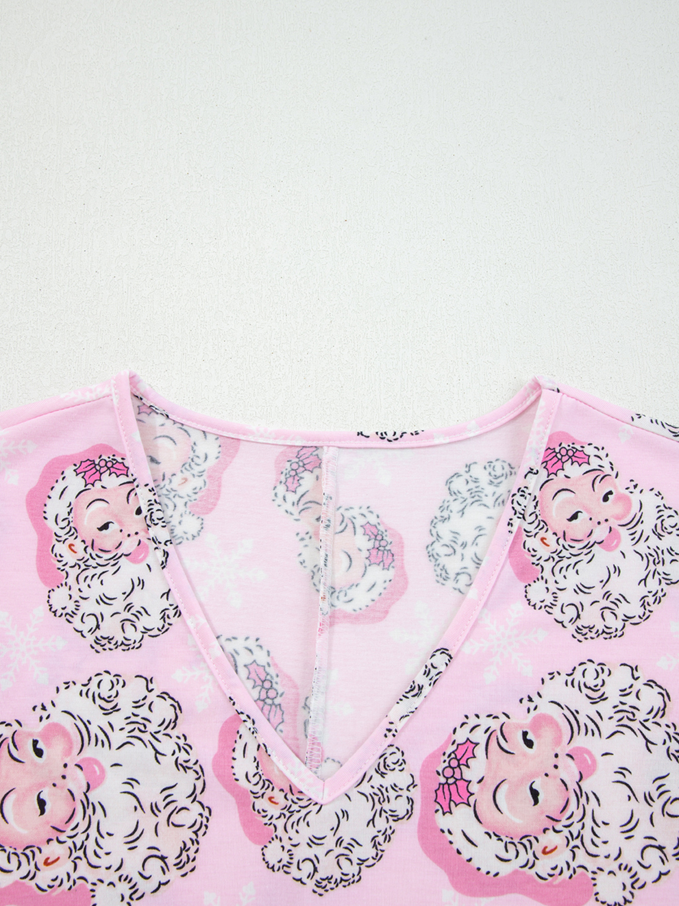 Santa Claus Print V Neck Tee Drawstring Pants 2pcs Lounge Set