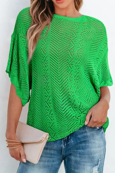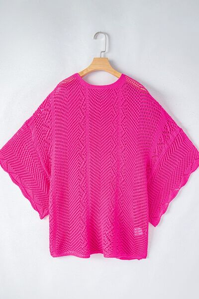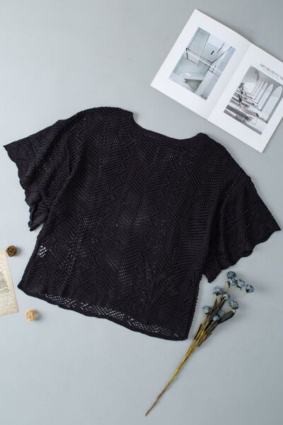 Scallop Edge Half Sleeve Pointelle Knit Top
