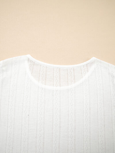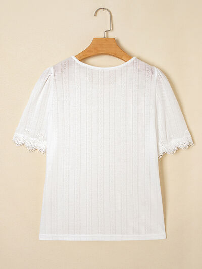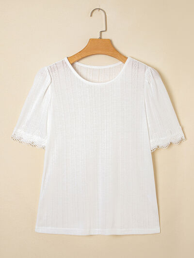 Scalloped Lace Trim Jacquard Textured T Shirt