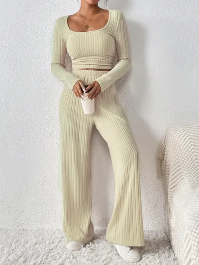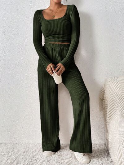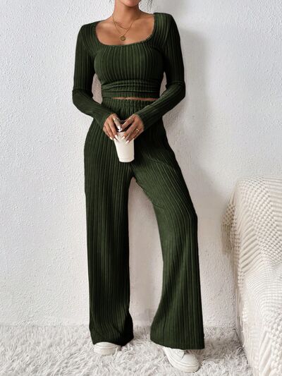 Scoop Neck Long Sleeve Top and Pants Set
