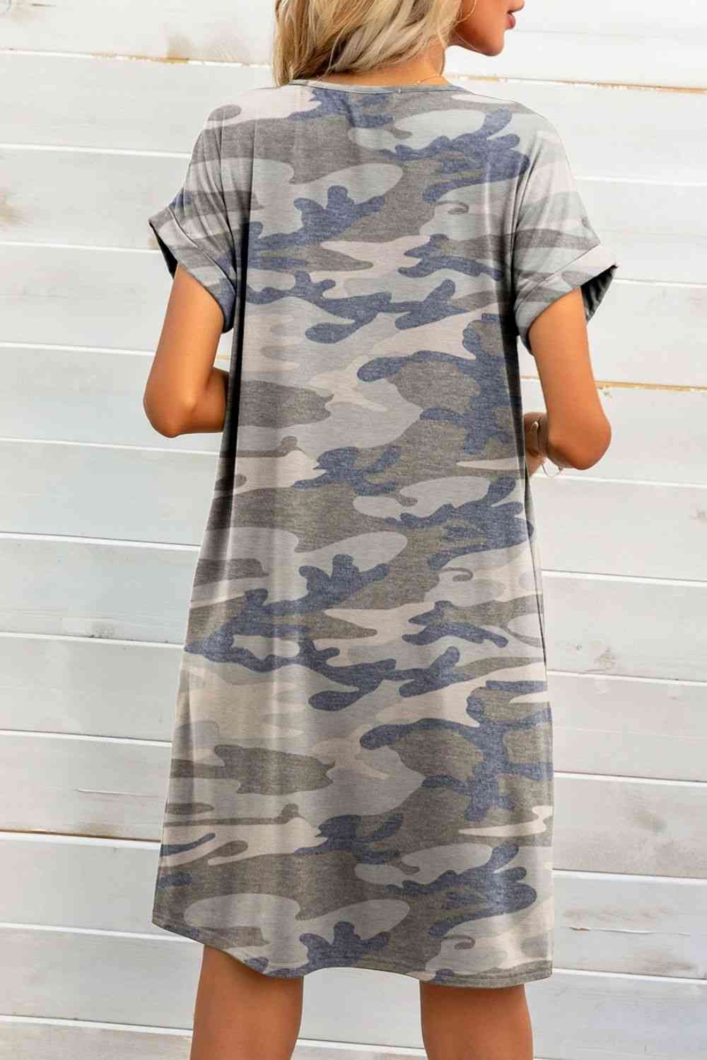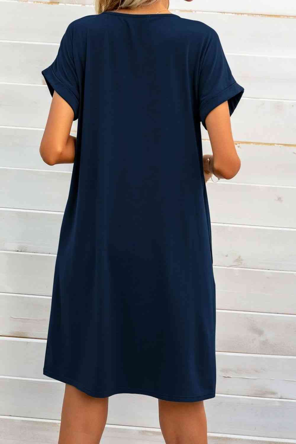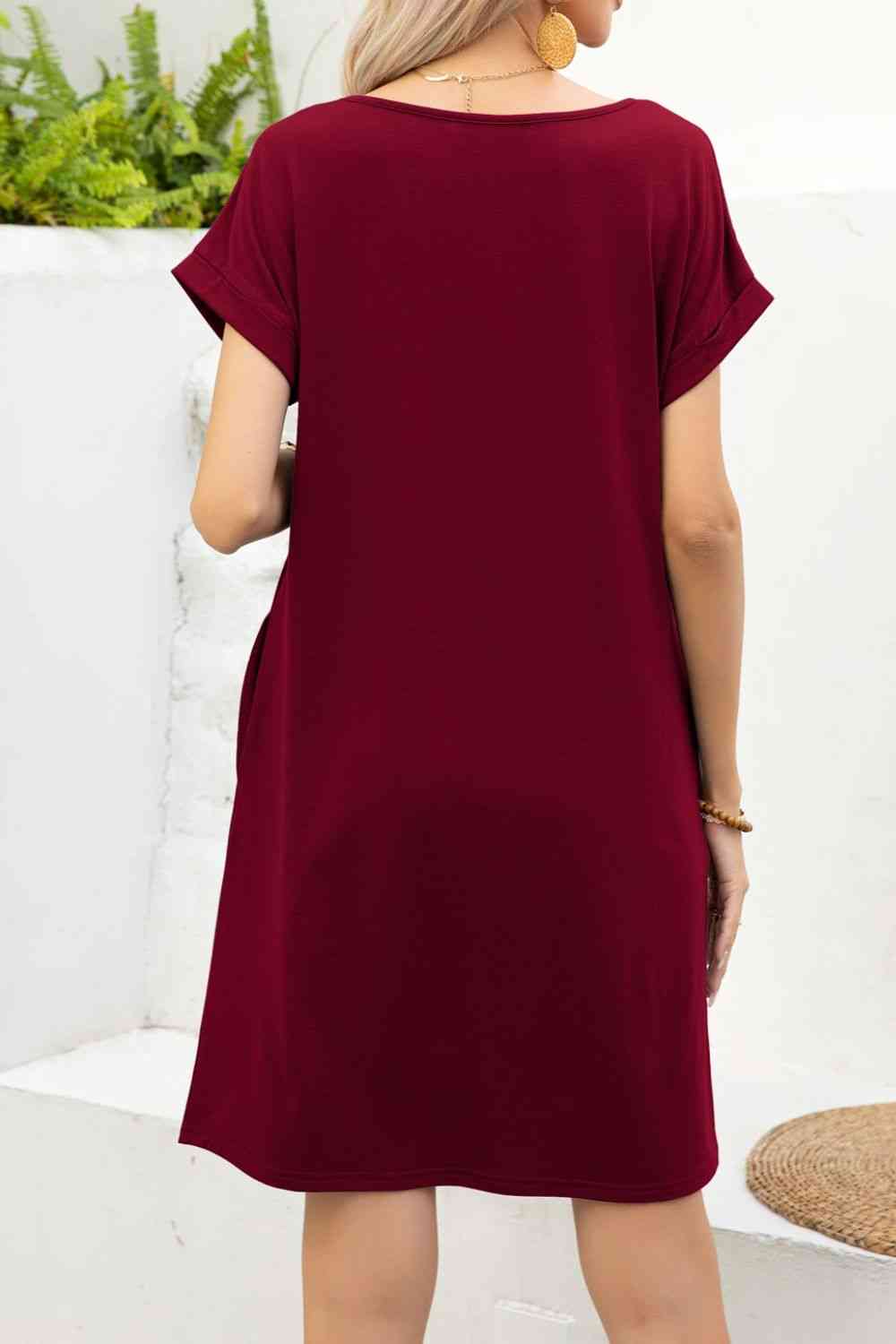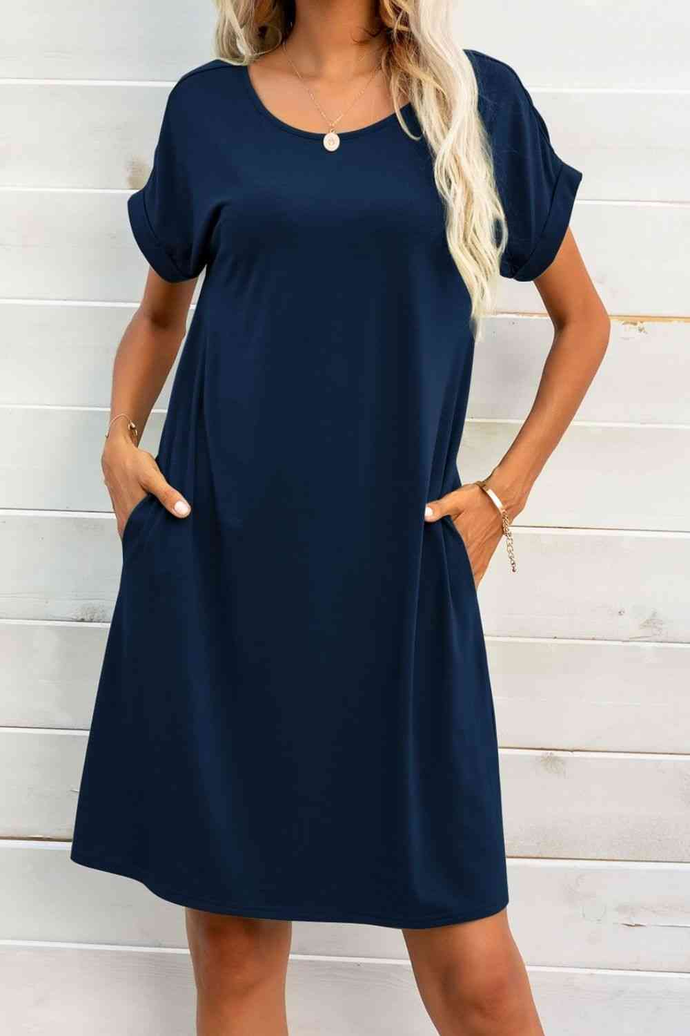 Scoop Neck Short Sleeve Pocket Dress