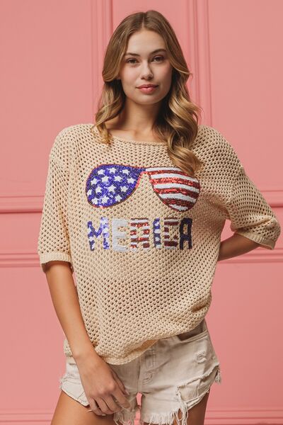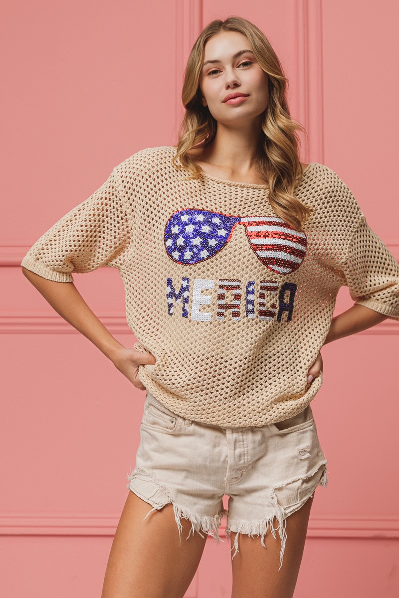 Sequin American Flag Sunglasses Knit Cover Up