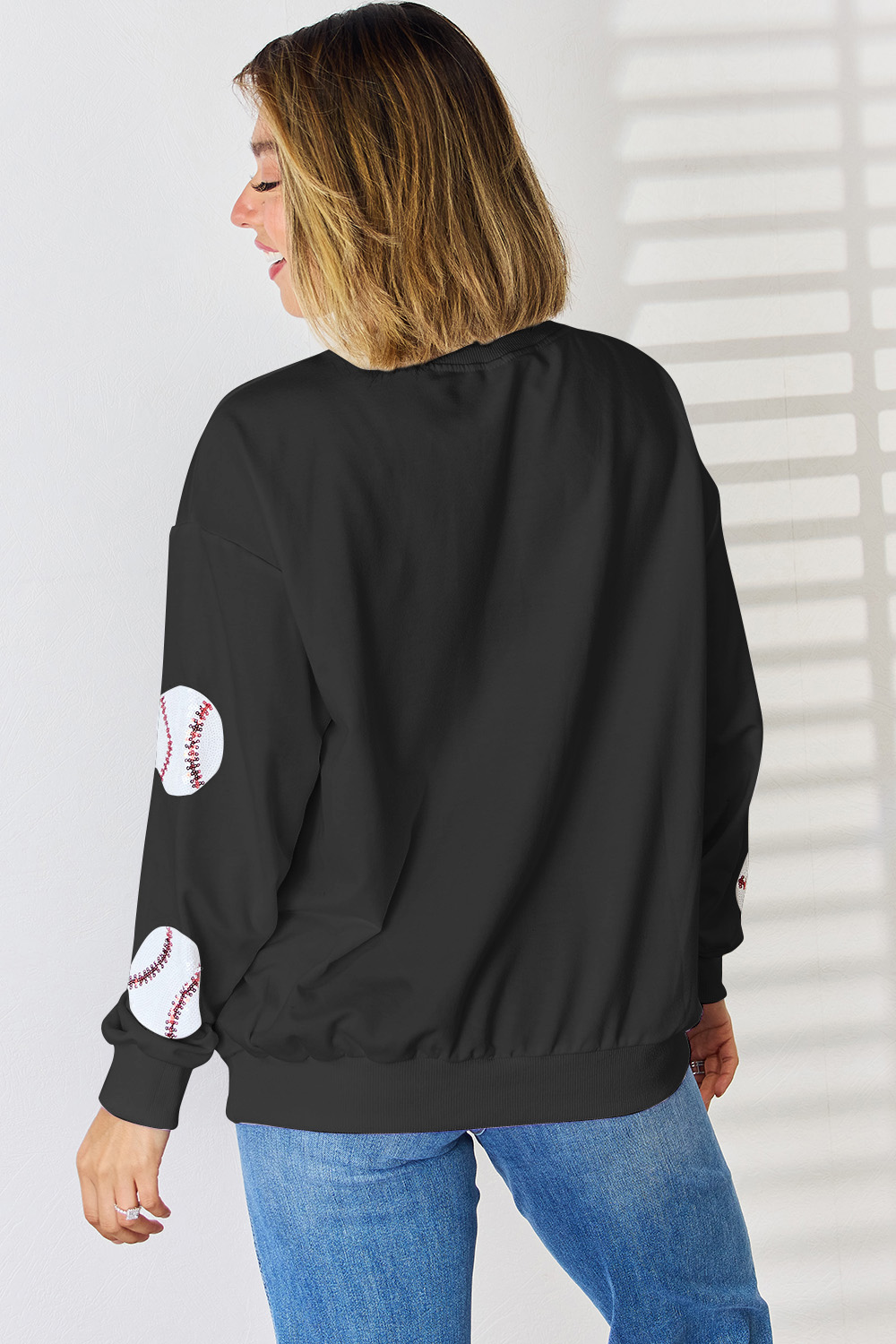Sequin Baseball Round Neck Dropped Shoulder Sweatshirt