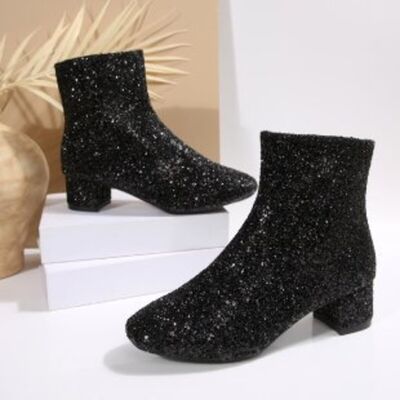Sequin Block Heels Boots